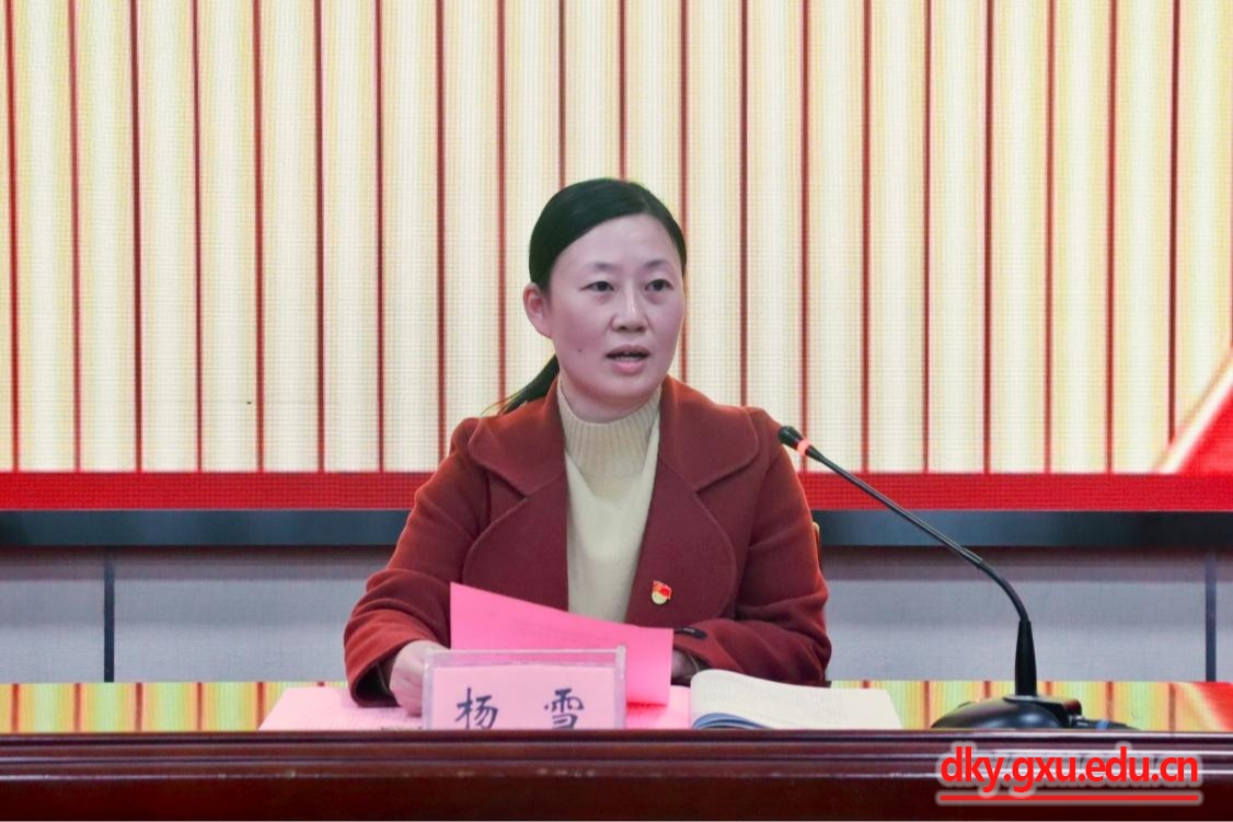 会上,杨雪代表学院党委向大会的召开表示热烈祝贺,充分肯定了研究生会过去一年在学院发展建设、学生成长成才、校园文化活动等方面所发挥的重要作用,同时对全体学生代表、学生干部和即将产生的新一届研究生会成员提出三点希望:一要筑牢思想根基,把稳青春航向;二要勇担强农使命,展现青春作为;三要勇于改革创新,提高服务水平。